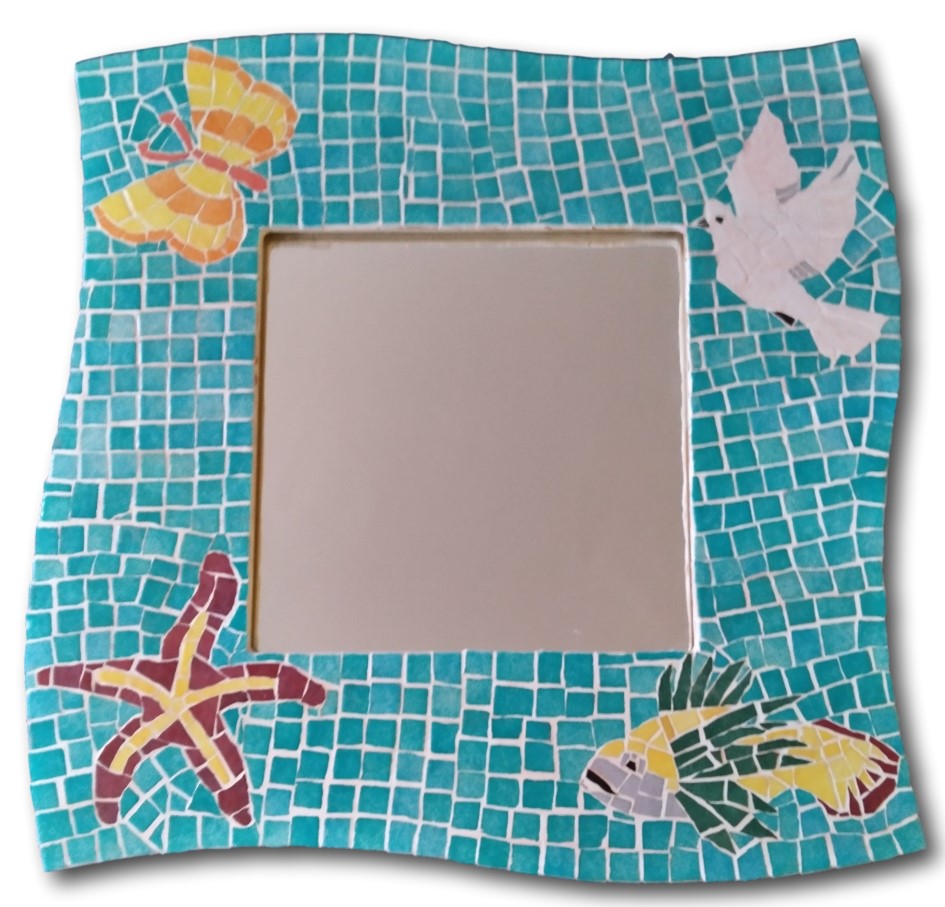 Entre l’étoile de mer et le poisson, cette mosaïque vous donne l’envie de revoir l’océan.